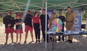 Dzielnicowi z Komendy Powiatowej Policji w Sławnie wraz z przedstawicielami Powiatowej Stacji Sanitarno – Epidemiologicznej w Sławnie, funkcjonariuszami Komendy Powiatowej Państwowej Straży Pożarnej w Sławnie, oraz ratownikami WOPR po raz kolejny w ramach działań „Kręci mnie bezpieczeństwo nad wodą” spotkali się z turystami i mieszkańcami powiatu sławieńskiego wypoczywającymi nad polskim morzem w Jarosławcu.